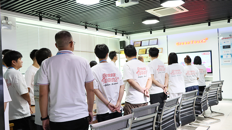 On the morning of September 3, 2025, Shenzhen GreenTouch Technology Co., Ltd. organized a collective viewing of the live broadcast of the National Day military parade, witnessing this solemn and inspiring historical moment. As the clock ticked to 2025, the ceremony commemorating the 80th anniversary of the victory of the Chinese People's War of Resistance Against Japanese Aggression and the World Anti-Fascist War gradually began.