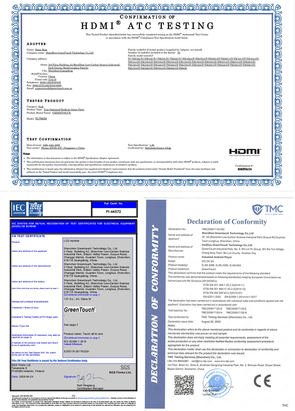 On April 24, 2020, our company's product touch all-in-one machine passed the CB test certification, and this CB test certificate was issued by the national certification authority.