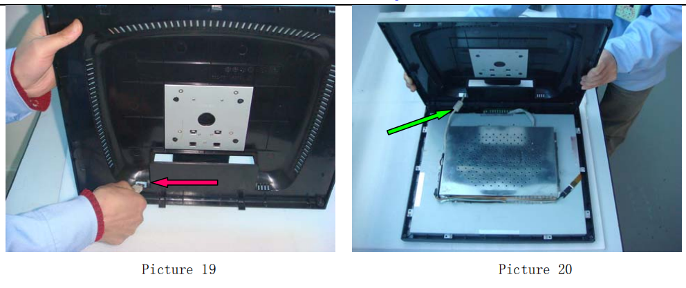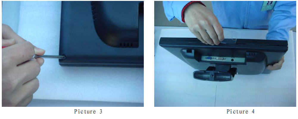 Note: When you want to open the back of monitor, Please do like this from the bottom of monitor ,to the side and to the top of monitor.
