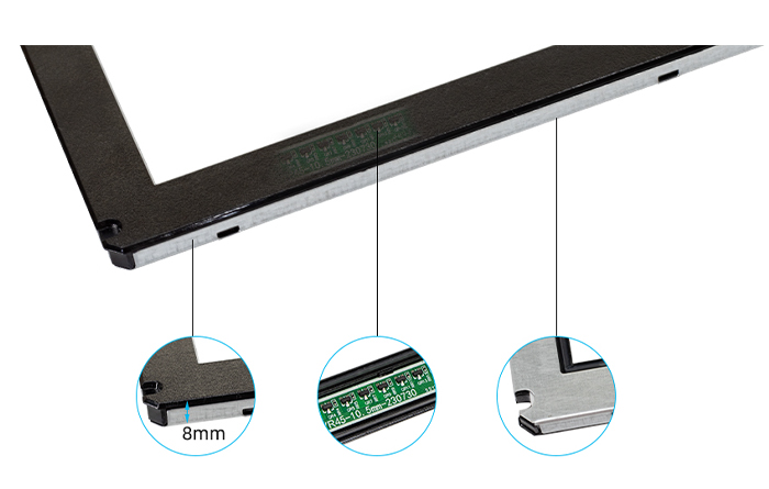 GreenTouch TE series waterproof infrared touch screen is suitable for standard size LCD screen equipment or special equipment that needs to achieve waterproof effect. The product can do IP65 waterproof and dustproof, can experience sun and rain for a long time, can be full-angle anti-light, in the bright light available for normal operation of the touch function. The series of infrared touch frame with self-developed programs and the latest algorithms, with USB2.0 + UATR interface plug and play, support for IPA (software interface) and driver-free, widely used in self-service kiosks, outdoor intelligent charging pile, outdoor advertising machine, outdoor query, self-service courier cabinets and other outdoor waterproof equipment.