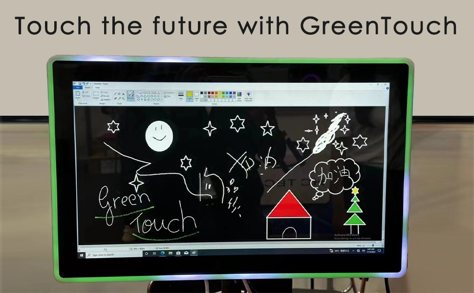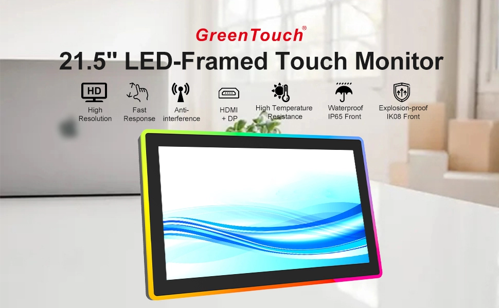 GreenTouch has developed a unique and high-performance touch screen monitor,primarily used in commercial Places.This display is currently available in four standard sizes: 21.5",27",32",and 43".The outer edge features a trendy and colorful LED marquee design,equipped with one LED light adjustment remote control.Users can easily select from a variety of RGB seven-color (red, green,blue,white,yellow,orange,purple) flashing modes,with support for 358 different lighting patterns.Customization options include color synthesis,speed,direction,and sequence.The display adopts high-definition TFT LCD,sensitive capacitive touch,and A+ grade original industrial LED screen.It is compatible with Windows,Android,and Linux systems.