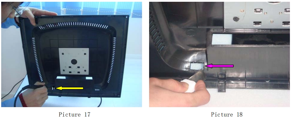 Note: When you want to open the back of monitor, Please do like this from the bottom of monitor ,to the side and to the top of monitor.